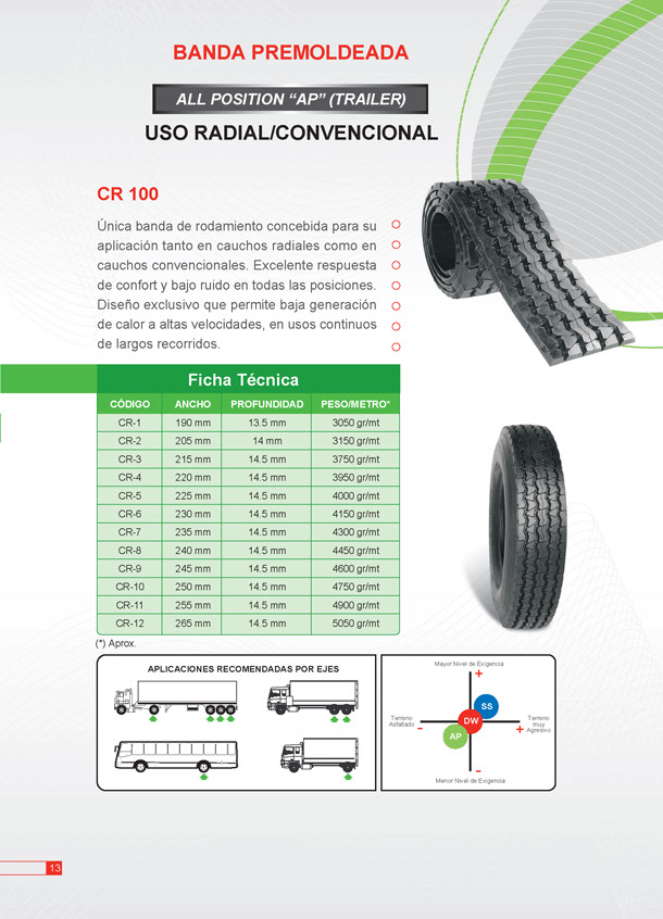 -El rendimiento kilométrico de un caucho se ve afectado, por supuesto, por varios factores externos tales como: aplicación, carga, ruta, estado de la carretera, estilo de conducción, entre otros